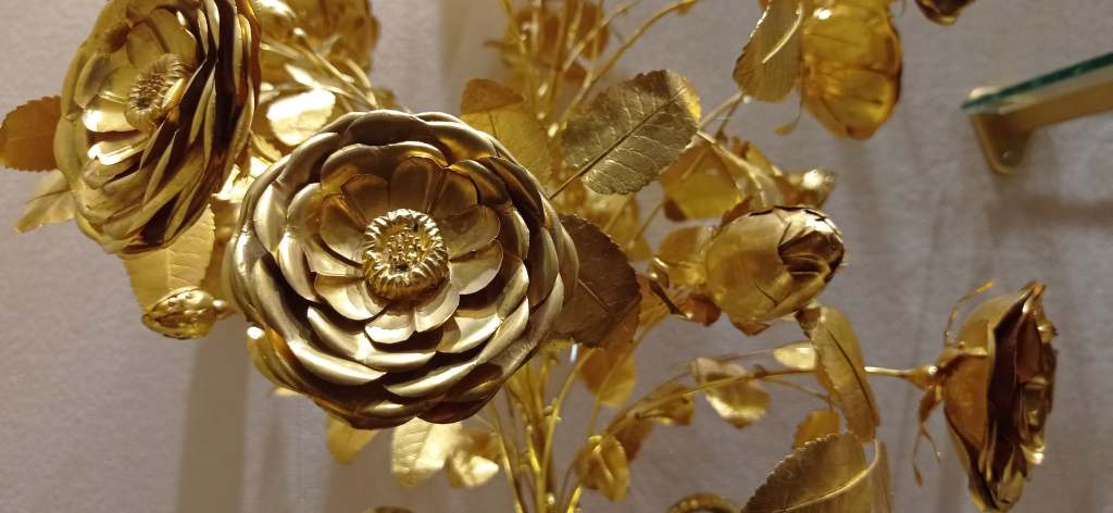 One of the historic papal Golden Roses, a symbol of devotion and spiritual dignity.